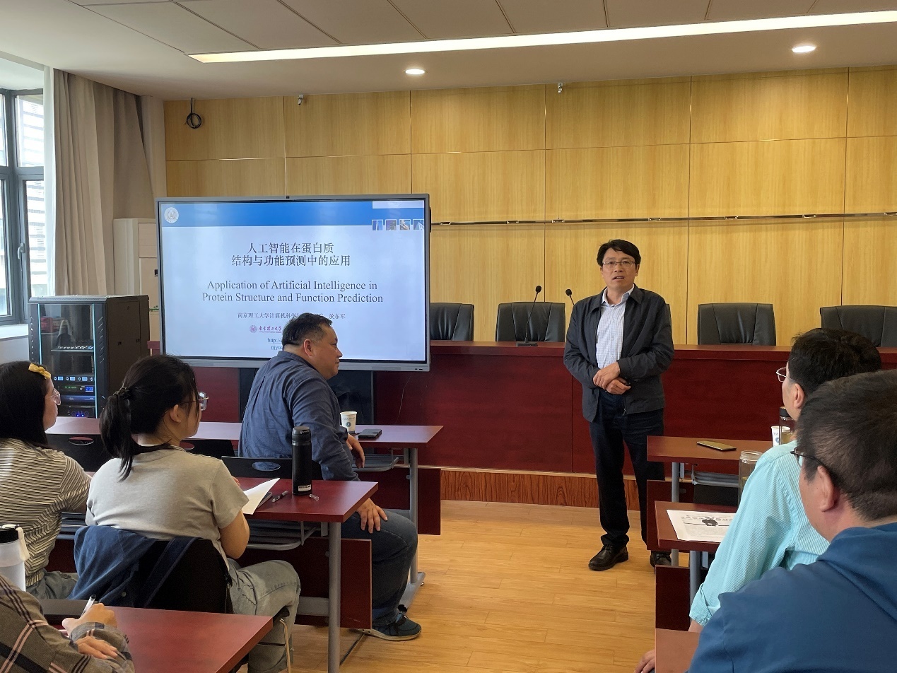 在聘任仪式完成后,由计算机学院副院长杨习贝主持,沈红斌教授与於东军教授在计算机学院报告厅分别作了题为“基于人工智能计算方法的生物医学数据处理与应用”和“人工智能在蛋白质结构与功能预测中的应用”的学术报告,计算机学院相关领导、青年骨干教师和研究生聆听了报告。