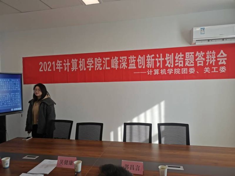 2021年12月30日下午,计算机学院“汇峰深蓝创新基金项目”结题答辩会在江苏科技大学长山校区计算机学院楼314办公室正式举行,江科大汇峰科技有限公司总经理郭昌言老师、镇江科大软件有限公司董事长刘从军老师、院党委副书记吴健康老师担任了此次结题答辩会的评委。