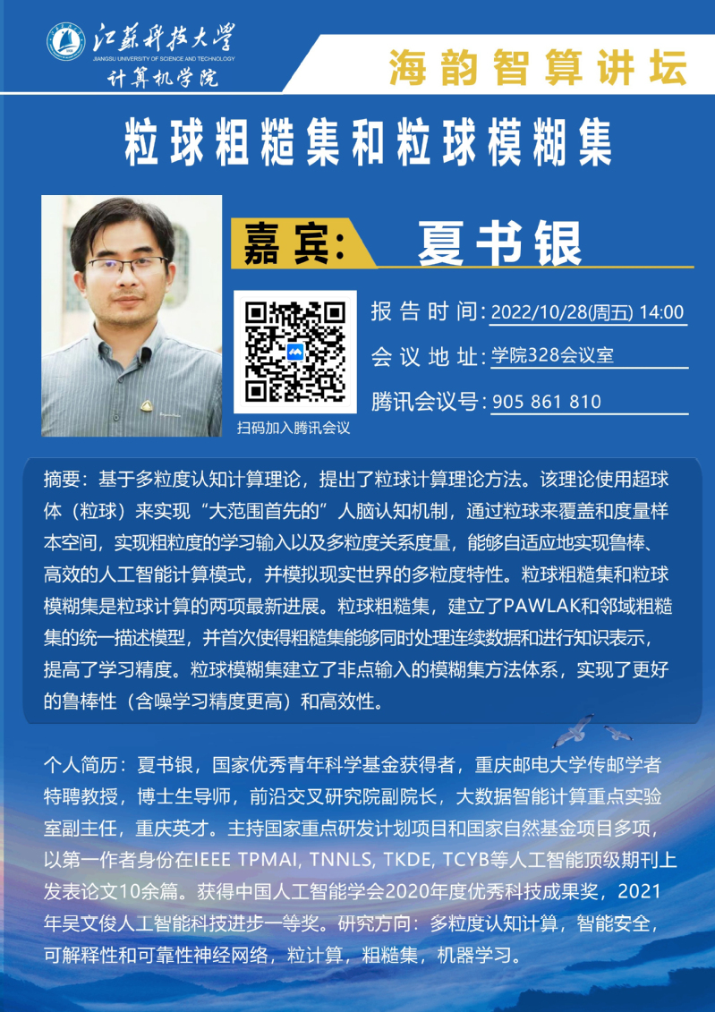 海韵智算讲坛:(夏书银)粒球粗糙集和粒球模糊集