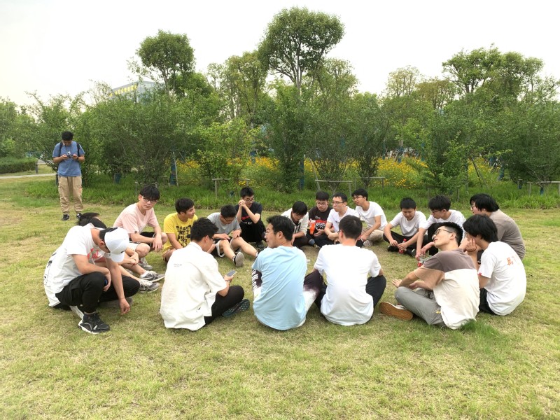 在户外素质拓展活动中,活动伊始,进行热身按摩操、抱团游戏“卖汤圆”,增加惩罚环节,活跃现场气氛,促进同学们相互了解,调动起大家的参与激情。