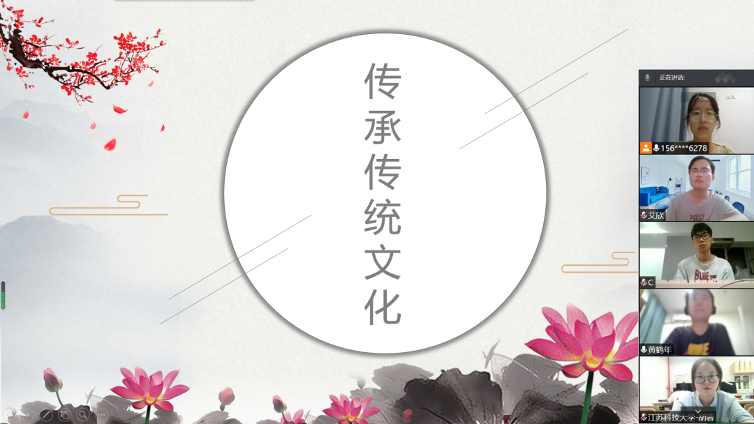 8月17日至19日,线上宣讲活动正式开始。本次宣讲对象为计算机学院部分留校同学,小队成员黄鹤年担任宣讲人,为同学们介绍项目传统文化“龙腾四海”。关于龙的形象,黄鹤年讲到:“龙是由鹿 、牛、鱼、兔等9种动物的特征融合而成,蕴含着中华文化兼容并蓄的特点。”