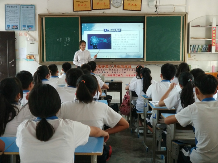 班主任莫康老师对“筑梦中国”宣讲团的到来表示热烈欢迎,他表示,通过大学生视角介绍祖国70年来的奋斗史,这样的爱国主义教育会让高中生更爱听,更容易接受,也能更好地激发当代青年学生的历史使命感与国家荣誉感,同时还可以借助计算机学院同学所学的专业知识,让更多的乡镇高中生对于信息时代、物联网时代有更加明确的认识。