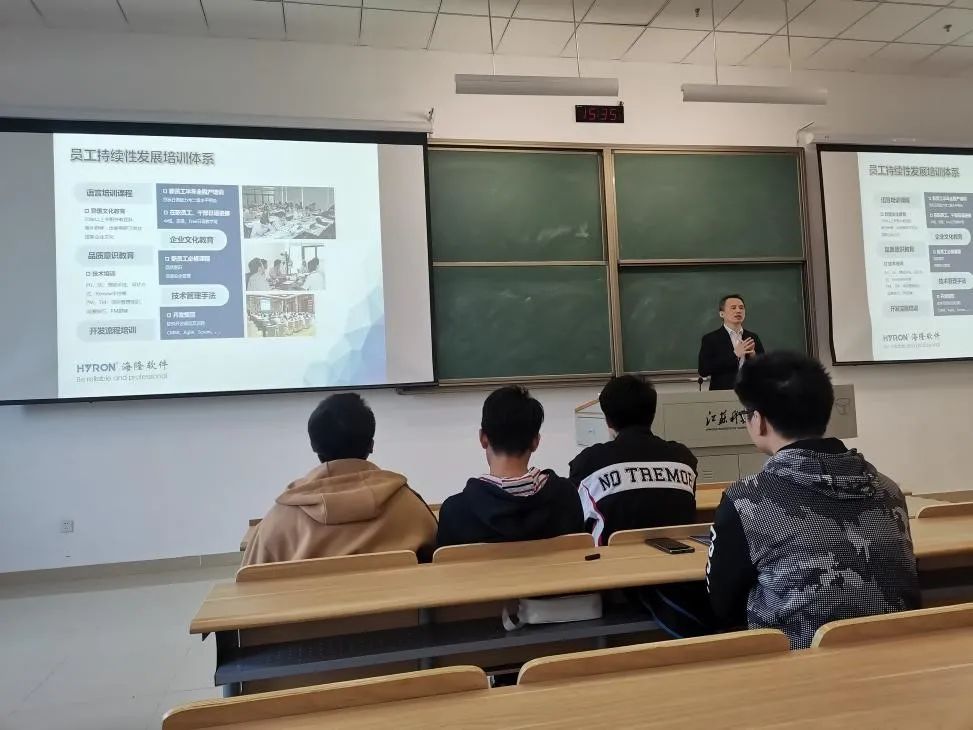 11月11日下午,计算机学院在文理大楼102开展了就业意识与能力提升暨学院专场就业宣讲会,邀请了上海海隆软件、中国通信镇江分公司、猿辅导三家企业的HR,针对大四毕业生和大二大三班级代表进行了企业招聘人才需求、职场进阶、企业文化等内容的讲座。