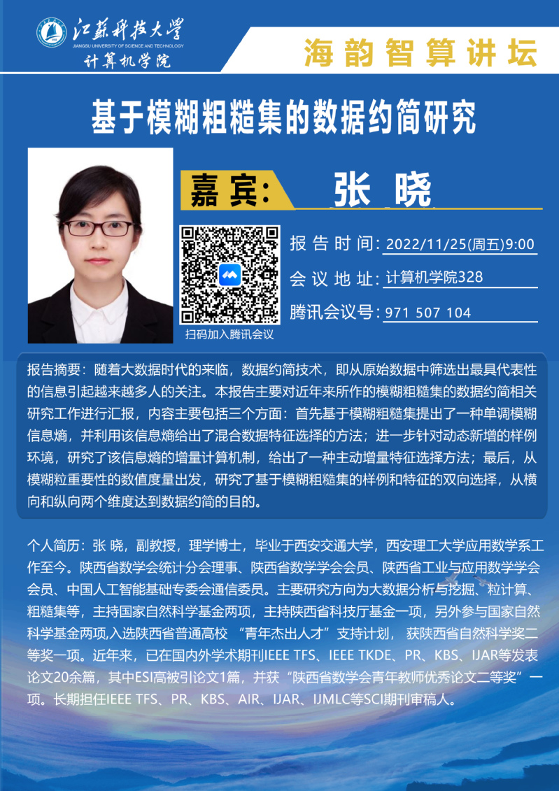 海韵智算讲坛:(张晓)基于模糊粗糙集的数据约简研究