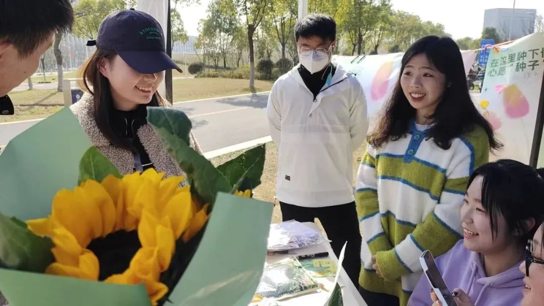 活动期间,计算机学院团委的同学引导每一位参与活动的同学在留言板上留下自己对未来的希冀、对亲朋好友的诚挚祝福、对学校的美好祝愿。并为参与活动的老师与教工送上鲜花。