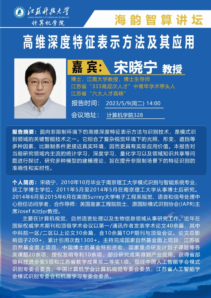 海韵智算讲坛:(宋晓宁)高维深度特征表示方法及其应用