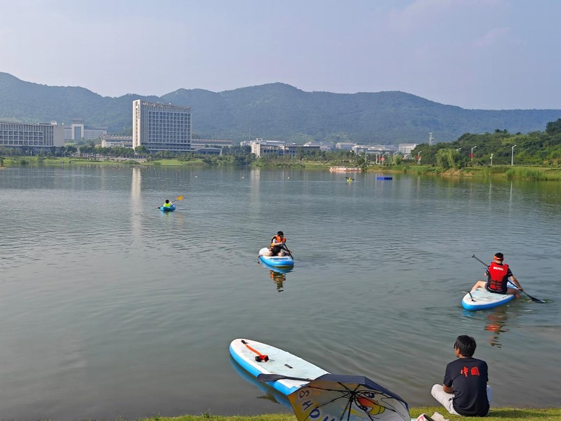 与皮划艇相比,浆板则更加适合追求速度和激情的教职工们。他们站在坚固的浆板上,手握浆板桨,迎着湖风迅速划动,让人眼花缭乱。浆板上的每个人都尽情释放自己的活力和热情,挑战湖水的浪尖,感受飞驰而过的刺激。无论是划过平静的湖水还是挑战湖面上的小浪,每个人都尽情享受了速度的快感。