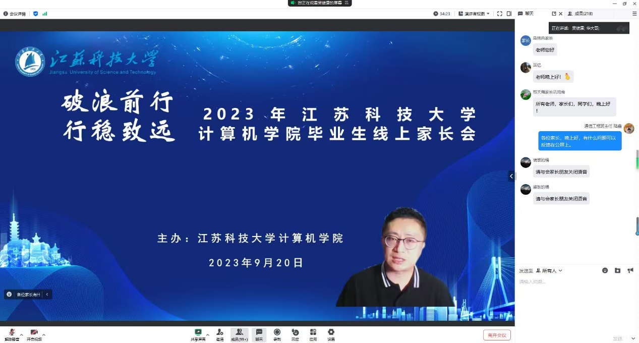 为了进一步加强家校联动,贯彻我校2024届毕业生就业工作指示精神,精准助力2024届学生高质量就业。9月20日,计算机学院在线上举办“破浪前行,行稳致远”2024届毕业生家长会。2020级全体学生家长及各专业班主任,共280余人参加会议。会议由党委副书记吴健康主持。