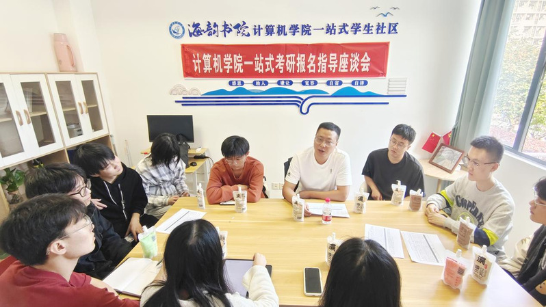 10月24日,计算机学院院长杨习贝赴学生公寓3号组团“海韵书院”一站式学生社区开展考研学子备考指导座谈会,考研负责辅导员及各个专业学生代表参加座谈。此次座谈会旨在深入了解学院各专业考研学生的备考状态,为同学们提供宝贵的考研经验和策略,同时也为学院的有关工作提供参考