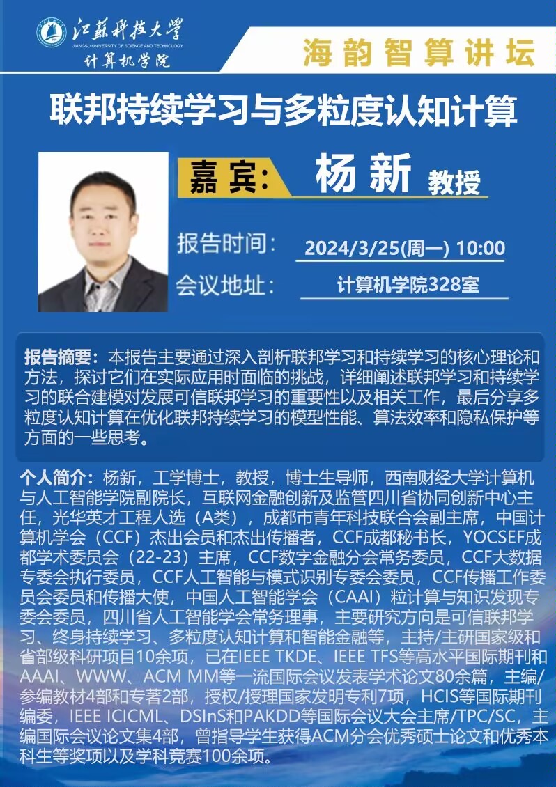 海韵智算讲坛:(杨新)联邦持续学习与多粒度认知计算