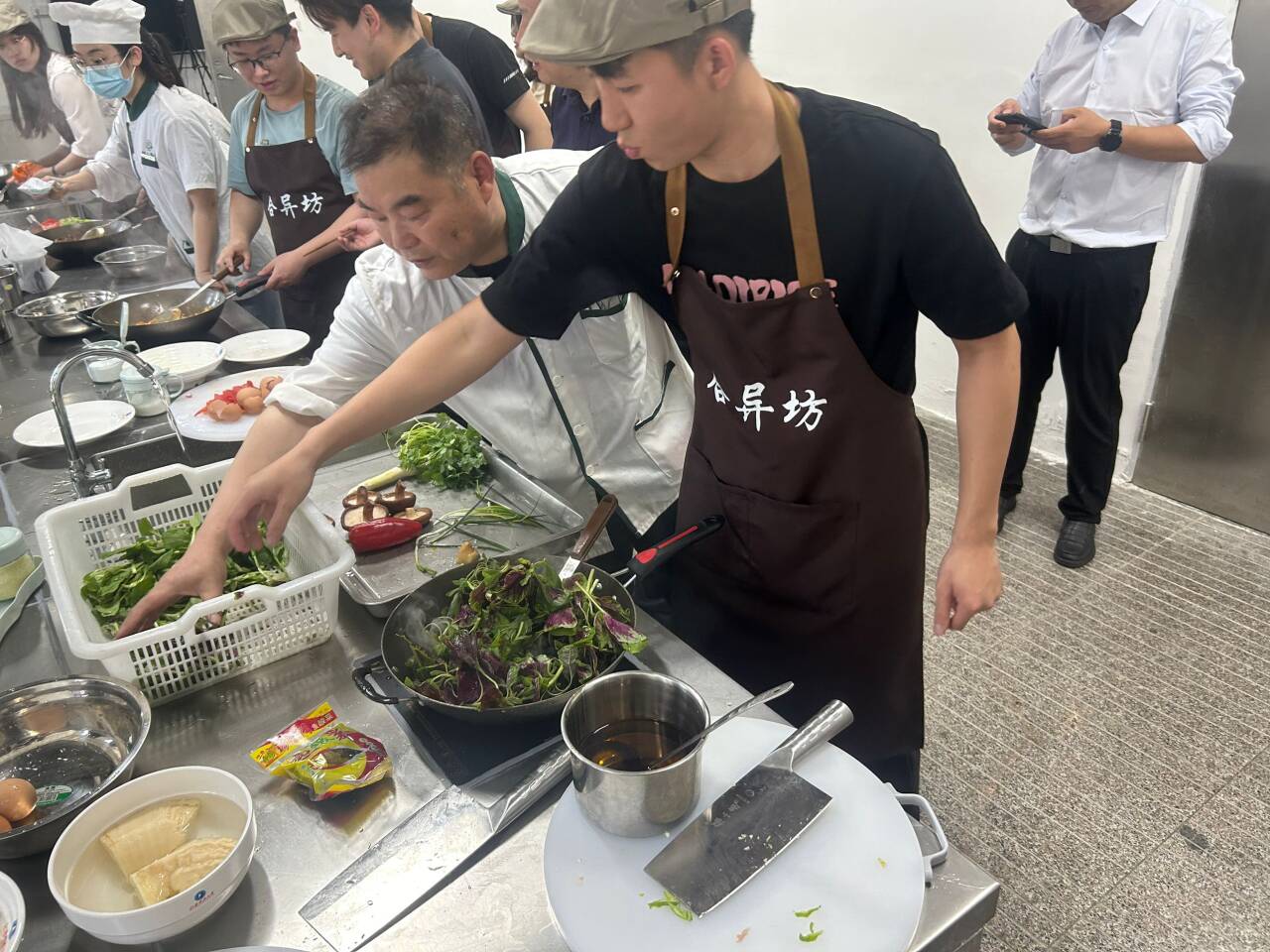在菜品选择完成后,食堂负责人讲解了烹饪技巧和设备使用方法,并进行了演示操作。随后,同学们开始发挥自己的创意,一道道美味佳肴渐渐呈现出雏形。