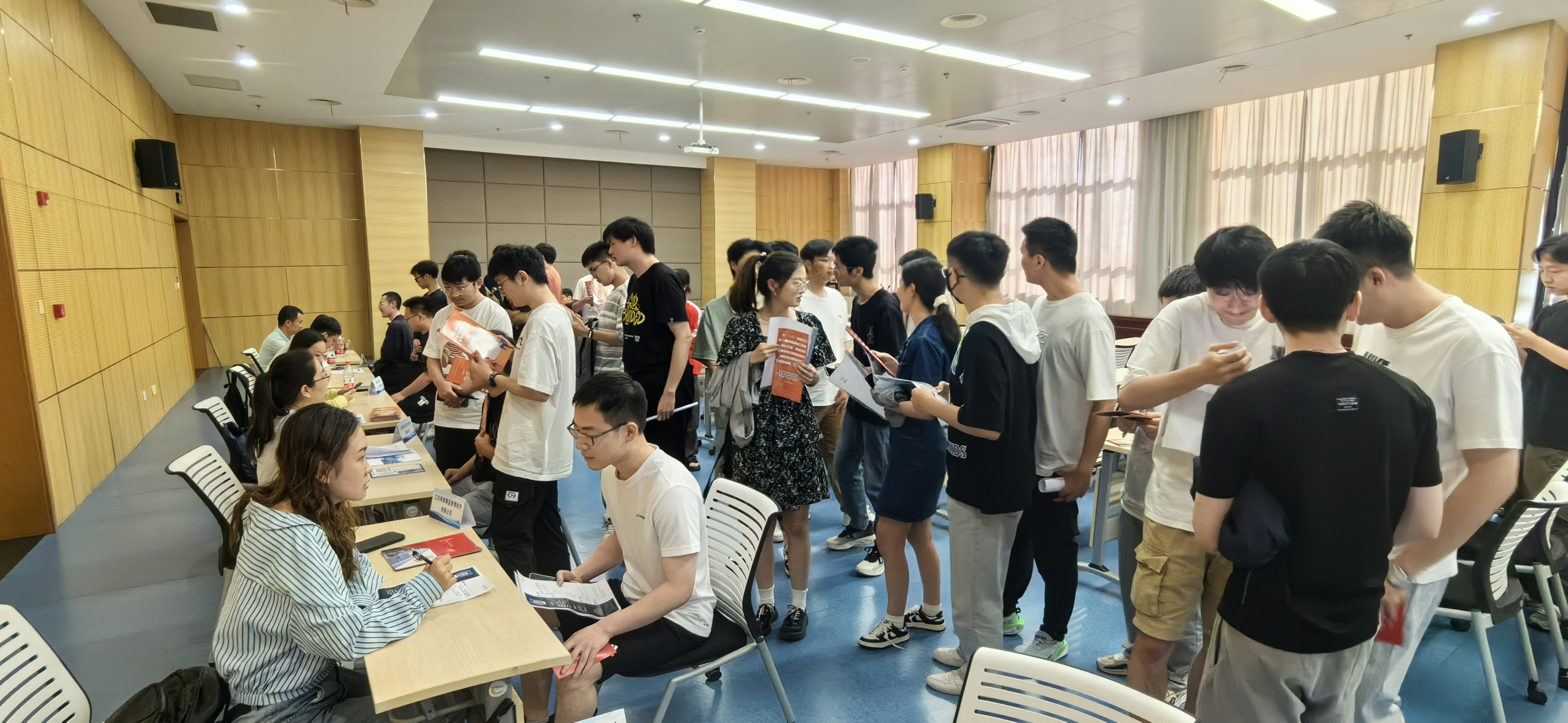 推介会结束后,有求职意向的学生积极前往B104和企业代表进行面试交流,同学们对于企业实习热情高涨,企业代表们和同学就实习内容、实习时间等进行具体沟通。