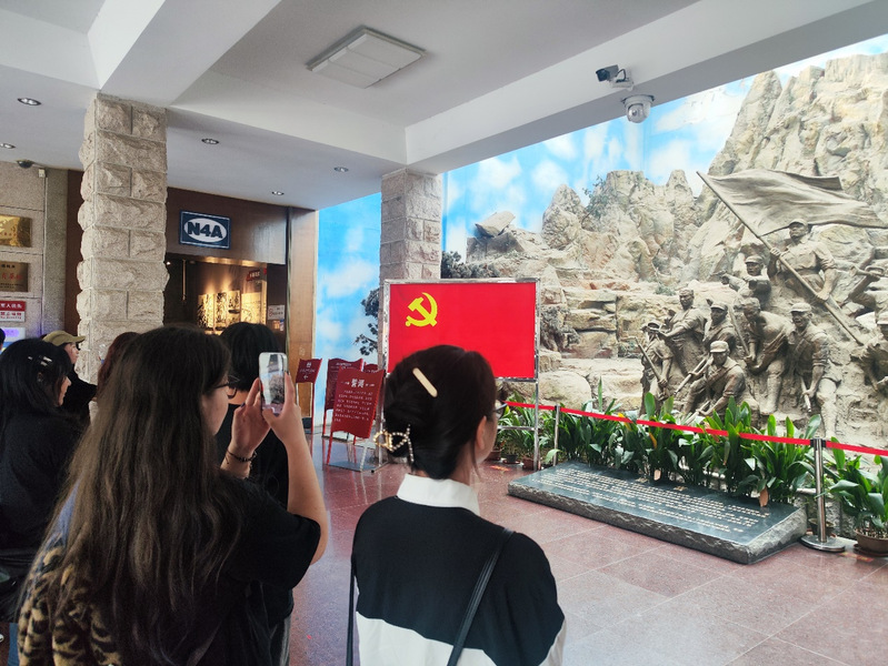 下午两点多,计算机学院的党员代表、团员代表以及红石榴工作室的部分成员齐聚一堂,乘坐专车前往茅山新四军纪念馆。经过一个小时的车程,大家抵达了目的地。在纪念馆入口处,大家整齐列队,怀着庄重的心情步入馆内。