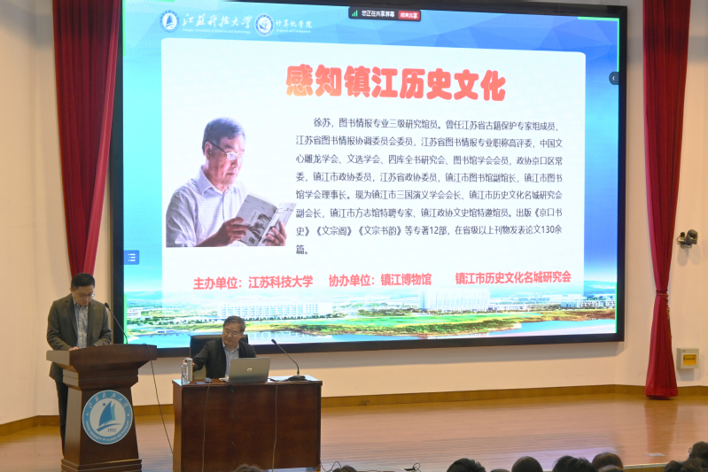 10月24日下午,由江南手机网页版登录入口,江南(中国)主办,镇江博物馆和镇江市历史文化名城研究会承办的“镇江历史文化”主题讲座在梦溪校区演讲厅成功举办。此次讲座邀请到镇江市三国演义学会会长、镇江市历史文化名城研究会副会长,镇江市方志馆特聘专家、镇江政协文史馆特邀馆员、镇江图书馆原副馆长徐苏担任主讲人。计算机学院2024级软件工程、人工智能专业的学生齐聚一堂,认真聆听讲座,计算机类专业的学生在教室内通过网络直播同步参与学习,全体新生辅导员也共同参与。活动由计算机学院党委副书记吴健康主持。