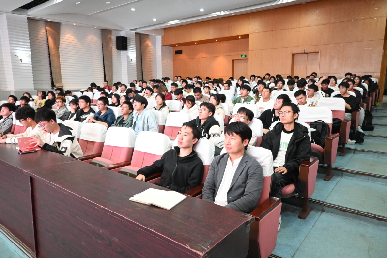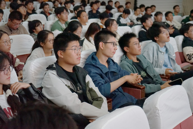 10月31日晚19:00,计算机学院2024级新生转型教育课第四讲在梦溪校区学术报告厅热烈开展。学院计算机科学与技术专业负责人胡春龙老师、计算机协会会长彭羽轩同学受邀担任讲座主讲人。现场气氛热烈,2024级计算机类专业的学生齐聚一堂,认真聆听讲座,软件工程、人工智能专业的学生在教室内通过网络直播同步参与学习,全体新生辅导员共同参加。活动由学院负责新生转型教育课的辅导员张威老师主持。