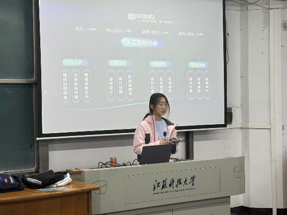 见面会上,会长,副会长及各部门部长依次登台亮相,详细介绍了各部的职责与工作重点,让新生们对协会架构有了清晰认知。同时,副会长赵慧娟同学回顾协会发展历程、展示过往成就,并分享了未来发展规划,激发同学们的参与热情与期待。