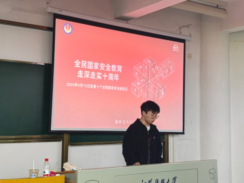 2025年4月15日是第十个全民国家安全教育日,为深入贯彻落实总体国家安全观,增强全体同学维护国家安全的使命感和责任感。4月15日下午,江南手机网页版登录入口,江南(中国)研究生在梦溪校区综D-301开展国家安全日活动,旨在引导全体同学牢固树立国家安全意识,认真履行国家安全的责任义务。